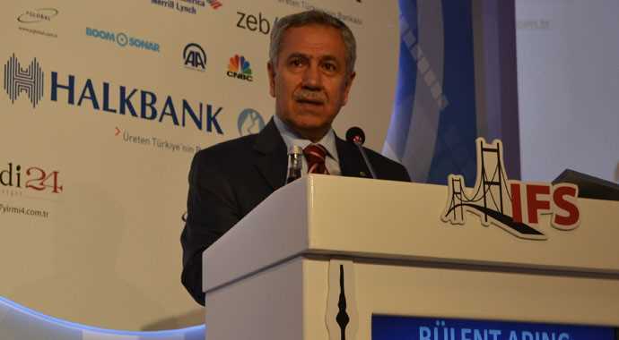 Suç örgütlerinin yakmak, yıkmak, öldürmek, yaralamak, kamu malına zarar vermek için yaptıkları eylemlere hiçbir hukuk devletinde izin verilmez. Biz de bunun aynısını yaptık” dedi. Başbakan Yardımcısı Arınç, “4. İstanbul Finans Zirvesi”nin kapanış konuşmasını yaparak yabancı yatırımcılara seslendi. Yatırımlar konusunda Türkiye'nin geleceğine ilişkin kafalarda bazı soru işaretlerinin yattığını düşündüğünü söyleyen Arınç, “Siz sadece rakamları konuşmaya gelmediniz bence. Bunu sordunuz mu sormadınız mı bilmiyorum ama havayı kokladınız. Ben size açıkça söyleyeyim Türkiye'nin istikrarını bozacak hiçbir harekete izin vermeyiz. Türkiye'de Haziran ayında Taksim ve Gezi parkında yaşanan olayları uluslararası medyanın dünyaya nasıl takdim ettiğini biliyoruz. CNN, BBC, Reuters'la bu konuda görüştüğümüz için biliyorum. Buradan onları suçlayacak bir densizlik yapmam. Bunu kendileri ile görüşmelerimizde söyledik. Onlar görevlerini yapıyorlar. Bize göre doğru veya yanlış ama medyanın işine karışmak niyetinde değiliz. Ama siz bu haberleri izledikçe büyük bir tedirginlik içerisine girdiniz. Türkiye'de ne oluyor. Türkiye'de kara günler mi gelecek. Yatırımlarımız etkilenecek mi, nedir bu olaylar diye endişe taşıdınız. Çok merak ettiğiniz yer on metre ötesi. Otele geldiğimde odamdan baktım. Park eskisinden daha güzel olmuş, insanlar içerisinde çok rahat bir şekilde durabiliyor. Taksim meydanı bir alan haline geliyor. Yayalaştırma projesi bitmiş trafiğe kapalı insanların huzur içerisinde bulunabileceği bir meydan haline gelmiş. Ama siz bunları görmediniz. Size televizyonlarda farklı yorumlar yapıldı. Maalesef çok öncesinden İstanbul'a savaş muhabirlerini gönderen kurumlar oldu. Bu hazırlıkların ne anlama geldiğini biz biliyoruz. Türkiye'nin siyasi istikrarını bozmak hükümetin itibarını zedelemek için sadece bu değil buna benzer çok olay yapılıyor. Ama başarısız oluyor. Demokratik gösterilere diyecek hiçbir şeyimiz yok. Sonuna kadar toplantı ve gösteri yürüyüşünü yasal bir şekilde yapmak için her türlü emirlerine hazırız. Ama suç örgütlerinin yakmak, yıkmak, öldürmek, yaralamak, kamu malına zarar vermek için yaptıkları eylemlere hiçbir hukuk devletinde izin verilmez. Bizde bunun aynısını yaptık. Ama şimdi Taksim ve Gezi parkı o günlerin etkisinden tamamen kurtulmuş güneş doğmuş ortalık aydınmış o zaman yapılan gösterilerin kimler tarafından ve ne maksatla yapıldığı ortaya çıkmıştır" dedi.“TÜRKİYE'DE SİYASİ İSTİKRAR DEVAM EDECEKTİR”